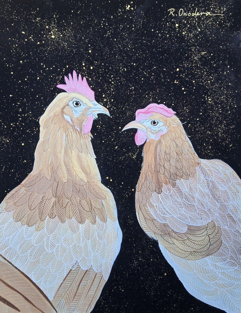 Title 鶏と牡丹 2024.11.25 M20(727×500) アクリル絵の具